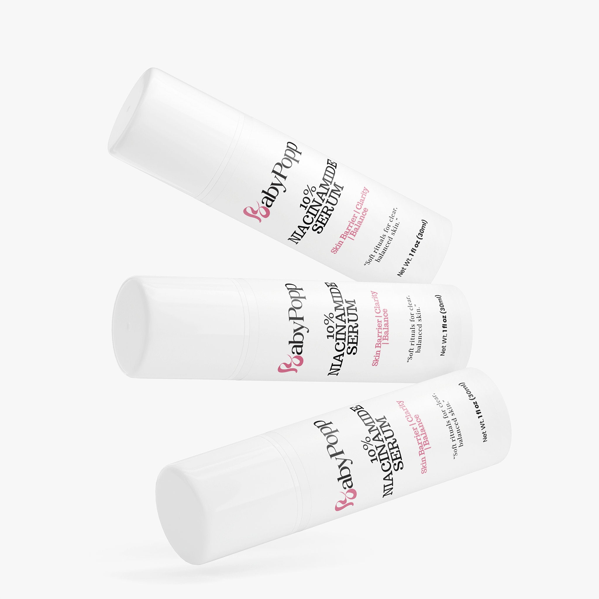Our Niacinamide 10% Serum is designed to visibly refine skin texture, minimize the look of pores, and support a healthy skin barrier. Lightweight and fast-absorbing, it helps balance oil production while promoting clearer, smoother, and more even-looking skin — without irritation.